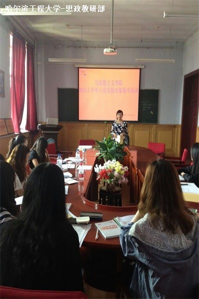 5月24日上午8时30分,tyc234cc 太阳成集团在41号楼4楼会议室举办本硕博2015年上半年入党发展对象培训课程,参与人员主要有:tyc234cc 太阳成集团学生工作办公室主任吴岚,学院党支部书记刘�琼,宣传委员夏春花,主持人桂柳莹以及11名本硕博入党发展对象学生。