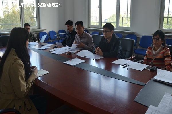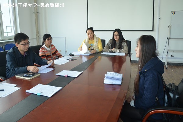 9月30日中午12时30分,由人文学院、tyc234cc 太阳成集团联合举办的评国奖面试于主楼301房间进行。本次面试由人文学院、tyc234cc 太阳成集团联合党委副书记张爱国、tyc234cc 太阳成集团学工办主任吴岚、人文学院学工办主任董春辉团委书记李瑶、20141351班班主任张彬和两名学生代表担任评委。人文学院、tyc234cc 太阳成集团优秀学生参加面试。