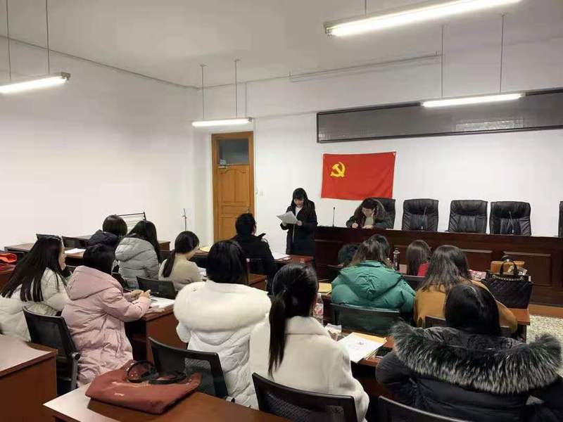 大会进行第二项,全体起立,奏唱国歌。大会第三项,讨论接收陈凯悦、邹金雷、李瑞瑞、郭宇婷、张曼、王阳、原杉、赵雪丽和许珊珊9名同志为中共预备党员。大会采取一人一议的原则,9名同志依次汇报自己对党的认识、入党动机、本人履历、家庭情况及向党组织需要说明的问题。然后由入党介绍人依次介绍拟发展入党人员的有关情况和对其入党的意见,党支部组织委员李韵琦同志代表支委会依次向大会报告对拟发展入党人员的培养考察和综合政审情况,到会党员充分发表意见。最后,正式党员依次进行无记名投票表决拟发展入党人员能否接收为预备党员,由党支部书记宣读决议草案,正式党员对该决议进行举手表决,拟发展人员表明自己的态度。大会第四项,全体起立,奏国际歌。