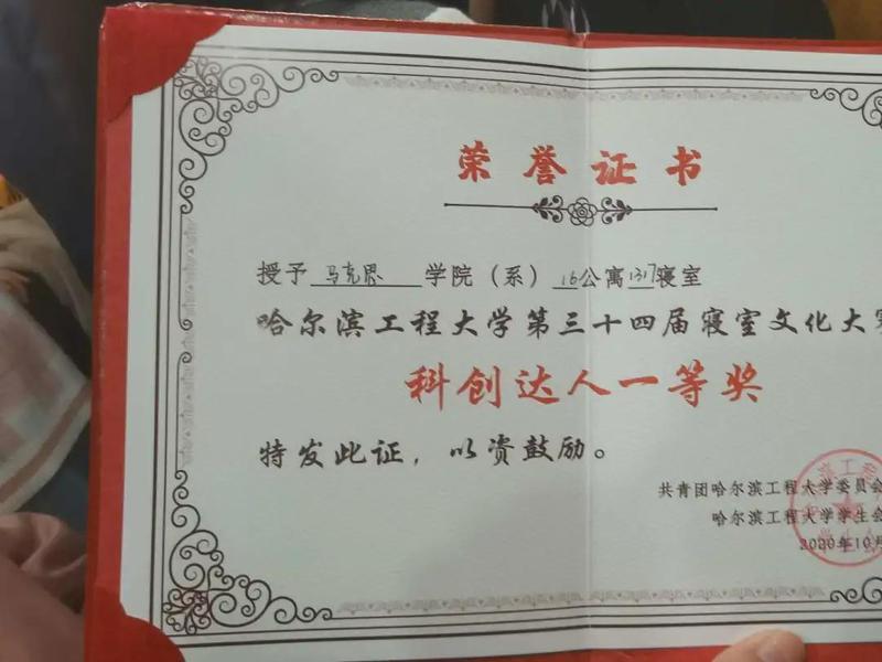 经过激烈的比赛后,1317寝室获“科创达人”组一等奖,1316寝室获“学术工程”组二等奖。