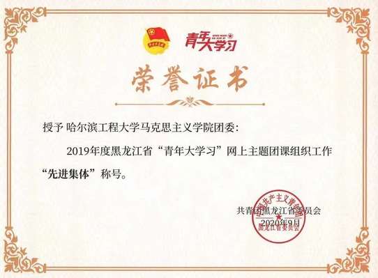 tyc234cc 太阳成集团荣获2019年度黑龙江省“青年大学习”主题团课组织工作“先进集体”称号。
