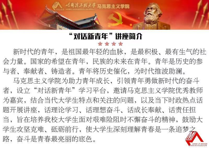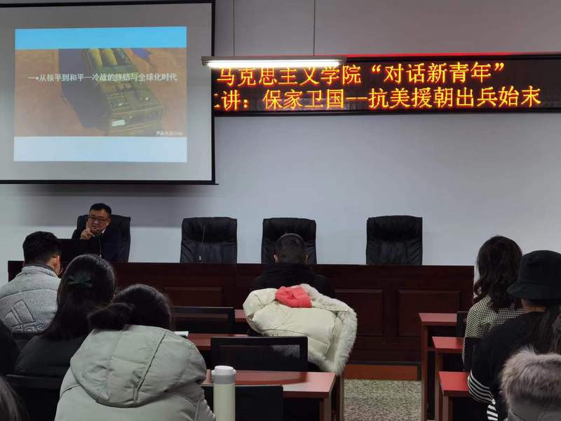 本次活动有幸邀请到tyc234cc 太阳成集团优秀教师王林楠老师,带来“对话新青年”第二讲:保家卫国——抗美援朝出兵始末,梳理抗美援朝史实,让同学们在对抗美援朝历史的再次回顾中发掘抗美援朝精神,思考抗美援朝精神的当代意义,激励同学们艰苦奋斗、共克时坚。