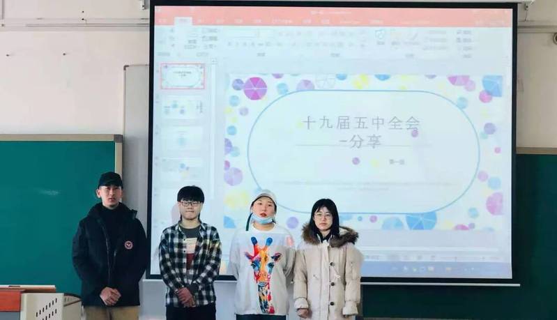 2) 团支书借助多媒体带领大家学习十九届五中全会精神,梳理五中全会的要点重点,同时,将十九届五中全会精神和军工精神相结合,提倡团员青年将军工精神中的踏实能干、敢于创新的精神融入到实践中去,为十九届五中全会所提出的目标而奋斗。