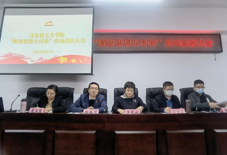 刘振宇作总结发言。他指出,一方面学院面临良好的发展机遇,同时也必将面临激烈的竞争态势,将担负更加繁重艰巨的发展建设任务。全体教工必须进一步“提高站位、解放思想、改革创新、真抓实干”。首先要提高政治站位:做到“六要”的首要标准——政治要强。二要解放思想,做到思想自觉、行动自觉。三要改革创新,思政课建设、学科建设要向改革创新要活力。四要真抓实干,幸福都是奋斗出来的。最后,刘振宇号召全体教工要通过解放思想大讨论,巩固党史学习教育成果,“学党史、悟思想、办实事、开新局”,聚力思政课建设、马克思主义理论学科建设,想干事、能干事、会干事、干成事,不断增强干事创业的志气、骨气、底气。