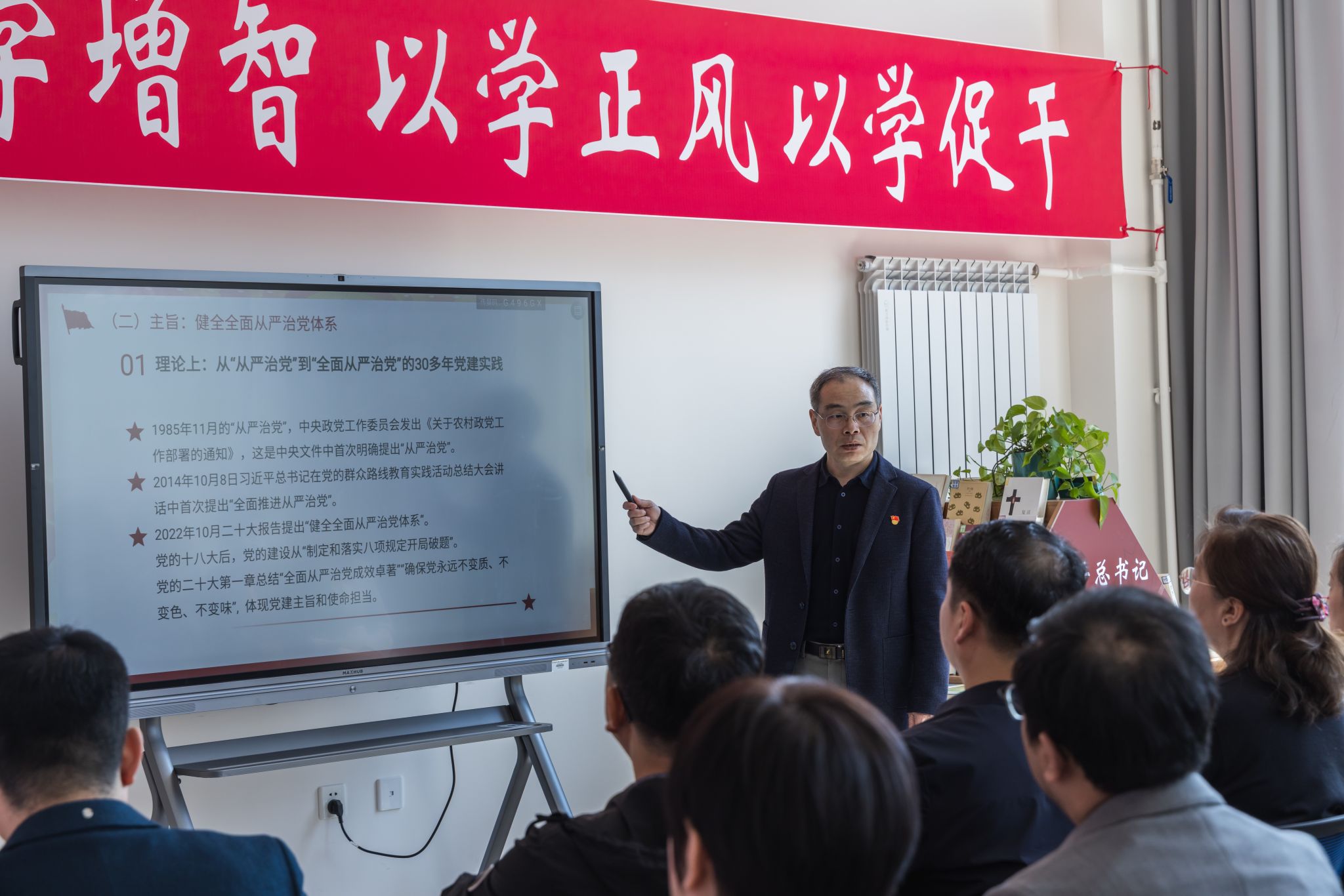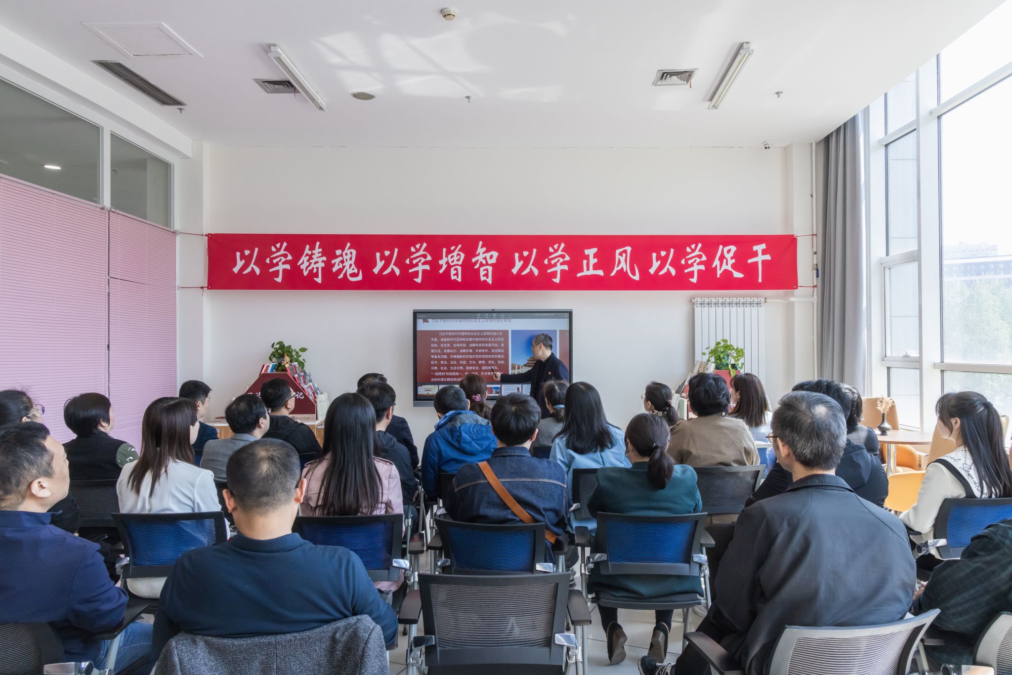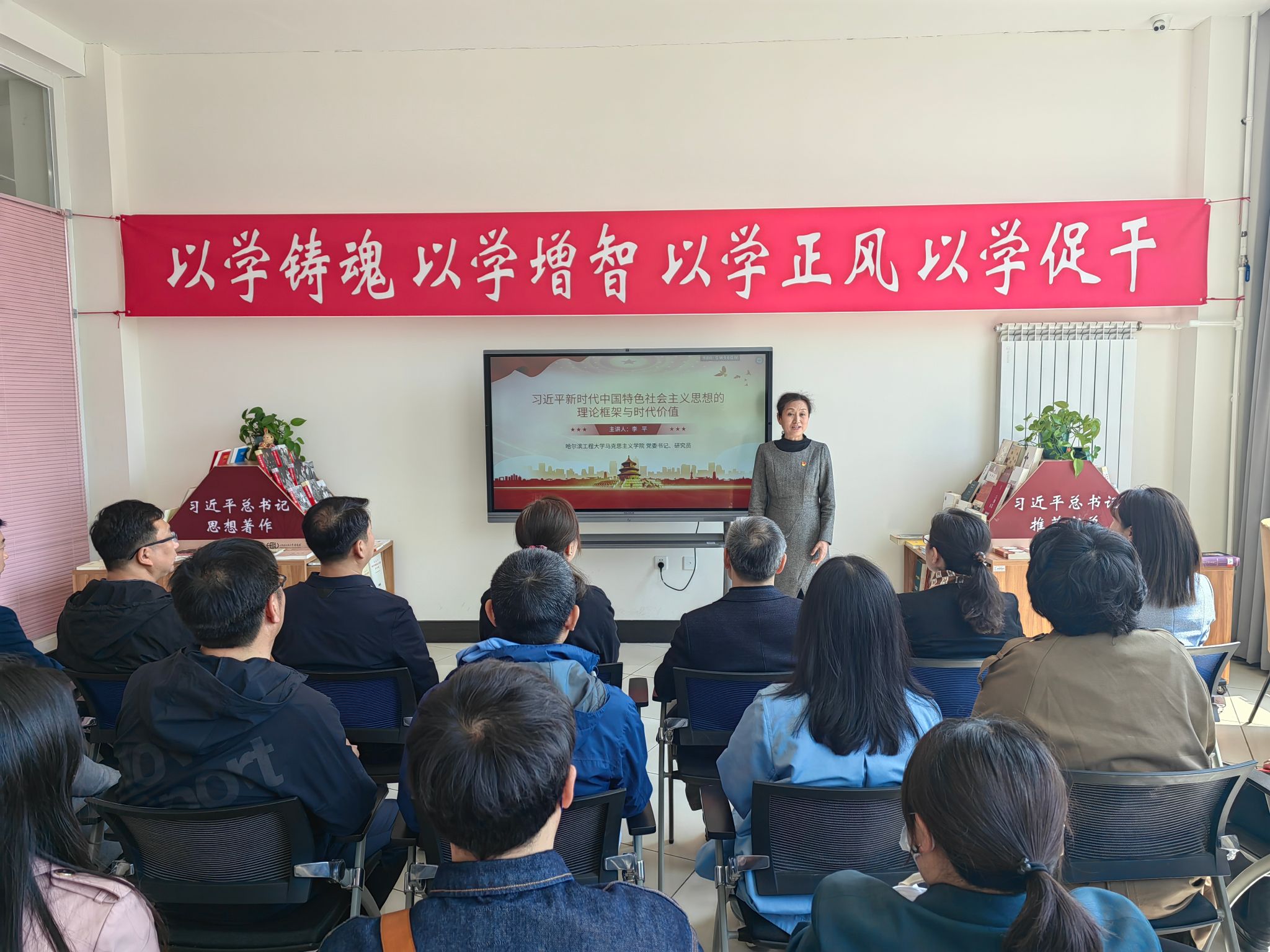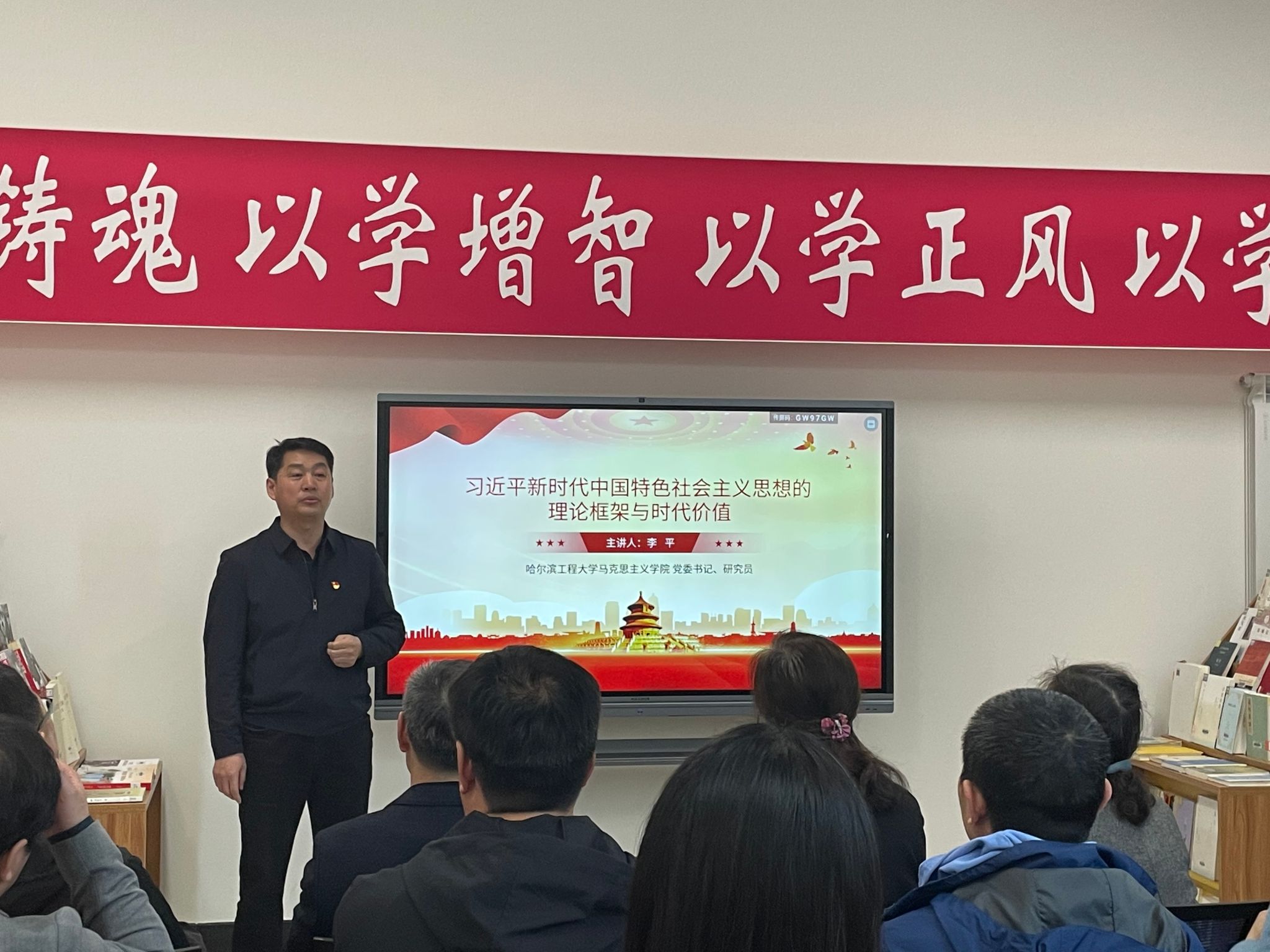 图书馆党总支书记刘文在开课致辞中指出,在学校开展主题教育期间,图书馆专设了主题教育图书室,提供主题教育书籍和授课设备,此次联合主题党日活动正是在主题教育图书室开讲的第一堂课。她希望学校各分党委和党总支可以充分利用主题教育图书室,推动学校主题教育深入开展。