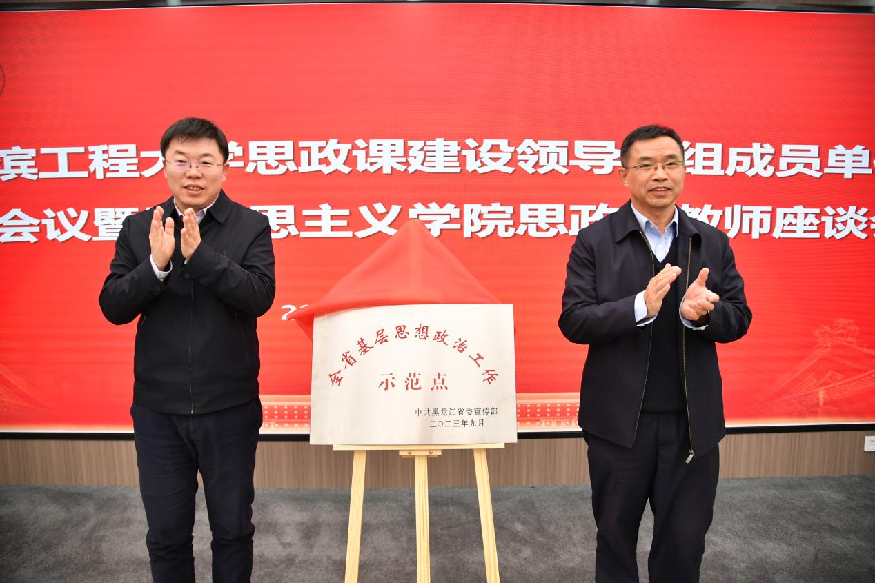 会上,彭远奎和李荣生为学校tyc234cc 太阳成集团“黑龙江省基层思想政治工作示范点”揭牌。