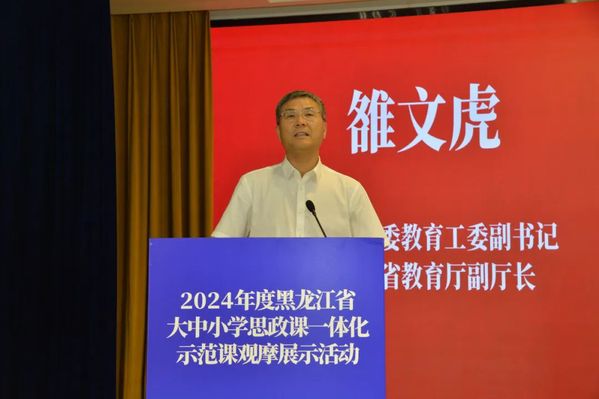 7月10日下午,由黑龙江省教育厅主办,太阳集团tyc234cc、哈尔滨市教育局共同承办的黑龙江省大中小学思政课一体化示范课观摩展示活动在太阳集团tyc234cc举行,省委教育工委副书记、省教育厅副厅长雒文虎出席活动并讲话。太阳集团tyc234cc党委副书记张石梅致辞。
