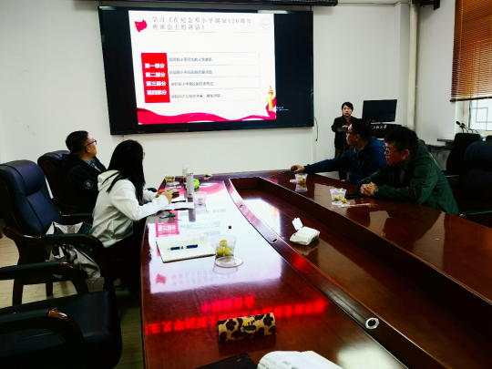 中央各项精神尽快融入思政课是提升思政课实效性的有效途径。主题党日第二项内容,由支部书记曲静领学习近平总书记《在纪念邓小平同志诞辰120周年座谈会上的讲话》(以下简称讲话)精神,请各位老师讨论如何将讲话精神融入纲要课“改革开放”这一专题中。曲静同志认为讲话包含了回顾邓小平同志的人生履历,总结邓小平同志的历史功勋,评价邓小平理论的历史地位,激励同志们继往开来、奋发进取四个方面。其中对邓小平历史功勋的总结与纲要课联系密切,对于党从十一届三中全会到十五大确立邓小平理论的指导思想地位进行了全面总结,是纲要课中可以使用的结论性论述。同志们表示讲话为讲好“改革开放”这一专题提供了透彻的学理分析。