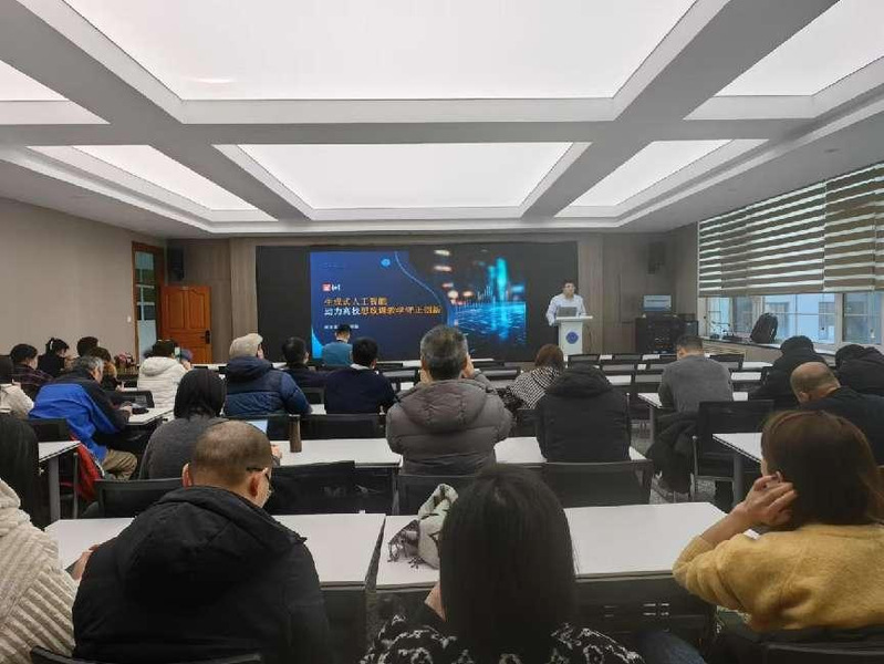 2025年1月2日下午,tyc234cc 太阳成集团教育教学改革与教师发展中心在主楼420会议室组织“思政课教师数智化素养提升”专题培训会,北京世纪超星信息技术发展有限责任公司课程建设工程师朱博瀚以《生成式人工智能,助力高校思政课教学守正创新》为题作专题报告。会议由tyc234cc 太阳成集团党委副书记、副院长潘强主持,全体思政课教师参会。
